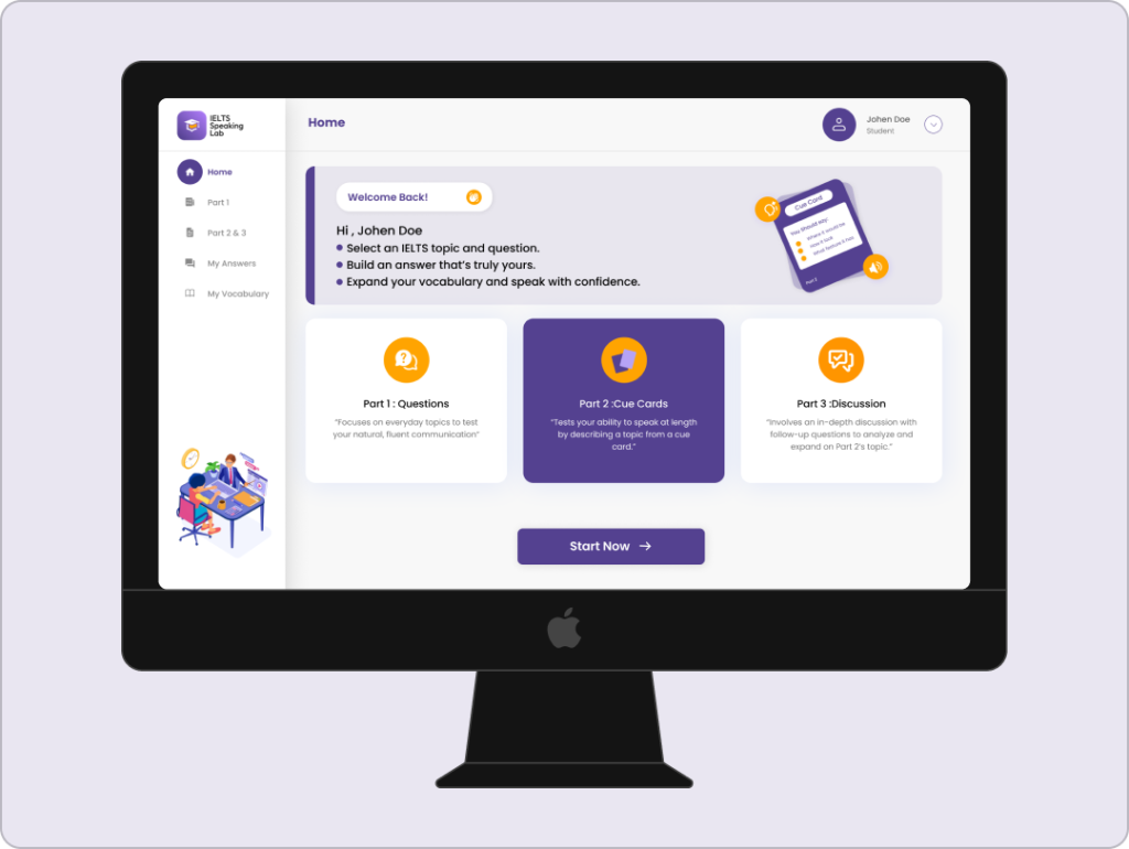 IELTS learners want fast improvement, immediate feedback, and simple tools that keep them moving. The client wanted a platform that delivered exactly that: AI-powered practice with real-world exam flow, a clean UI, and progress tracking that actually helps students improve.