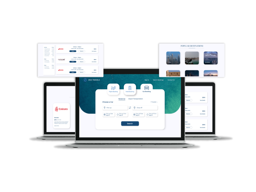Zeki Expert Solutions partnered with Zeki Travels to build a powerful, AI-driven online travel platform. The solution offers a complete booking experience, integrating flights, hotels, rentals, destination guides, and insurance, with a responsive, mobile-friendly interface. Built using Node.js, ReactJS, and MongoDB, the platform delivers real-time results, dynamic pricing, and personalized travel suggestions, making the user experience smooth, smart, and scalable.